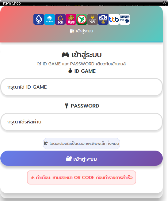 ใส่ไอดีเกม & รหัสผ่าน & กดปุ่ม เข้าสู่ระบบ