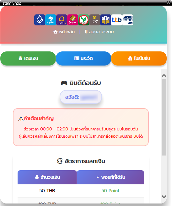 เข้าไปยังเกมส์ กดปุ่ม icon กระเป๋าเงิน