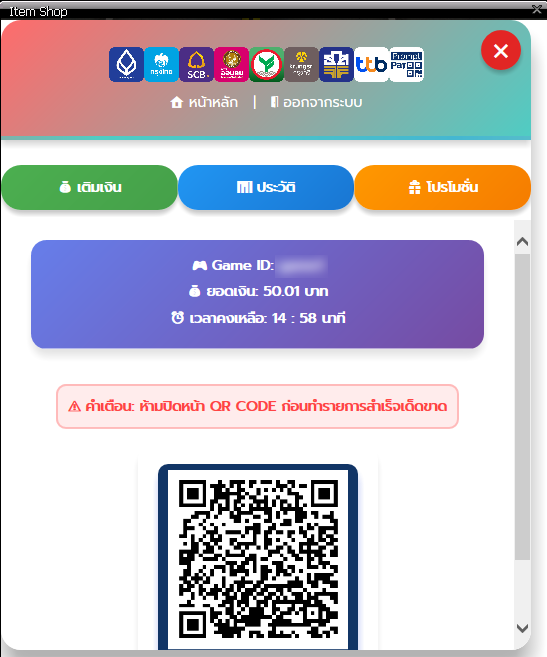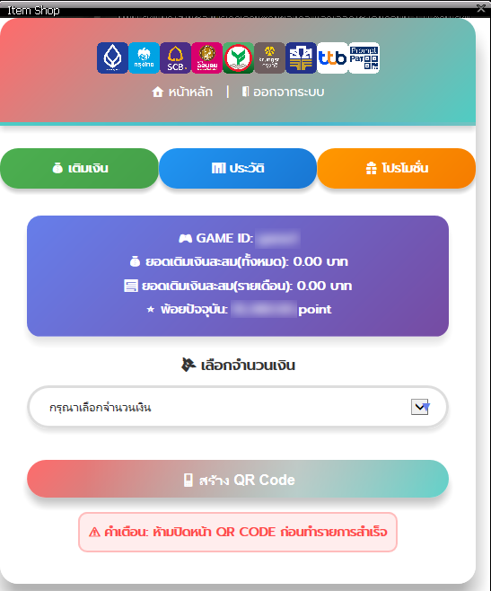 เลือกจำนวนเงิน แถบด้านล่าง เพื่อสร้าง QR Code